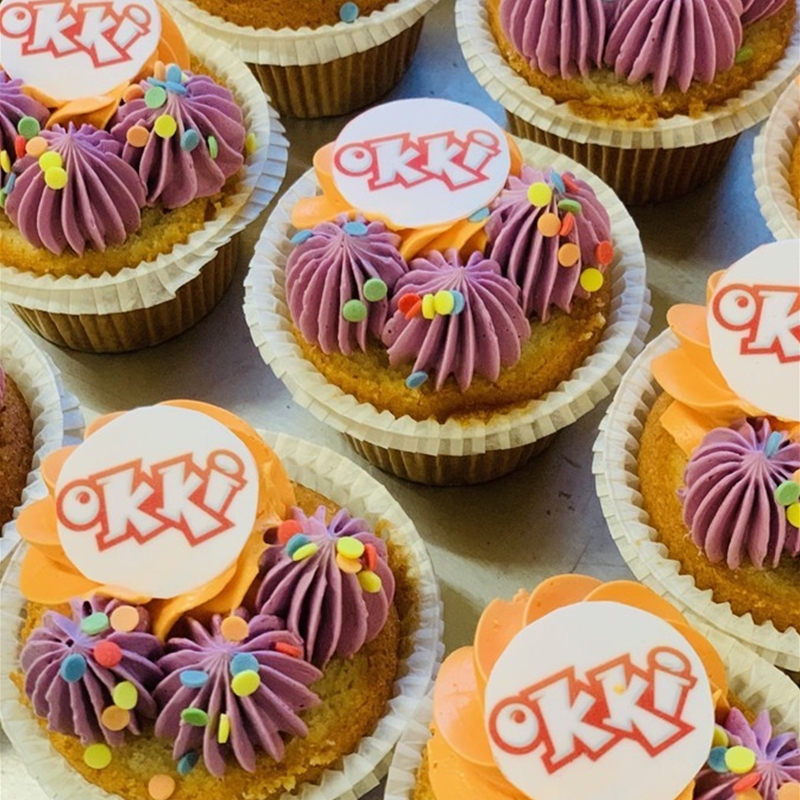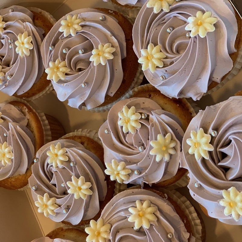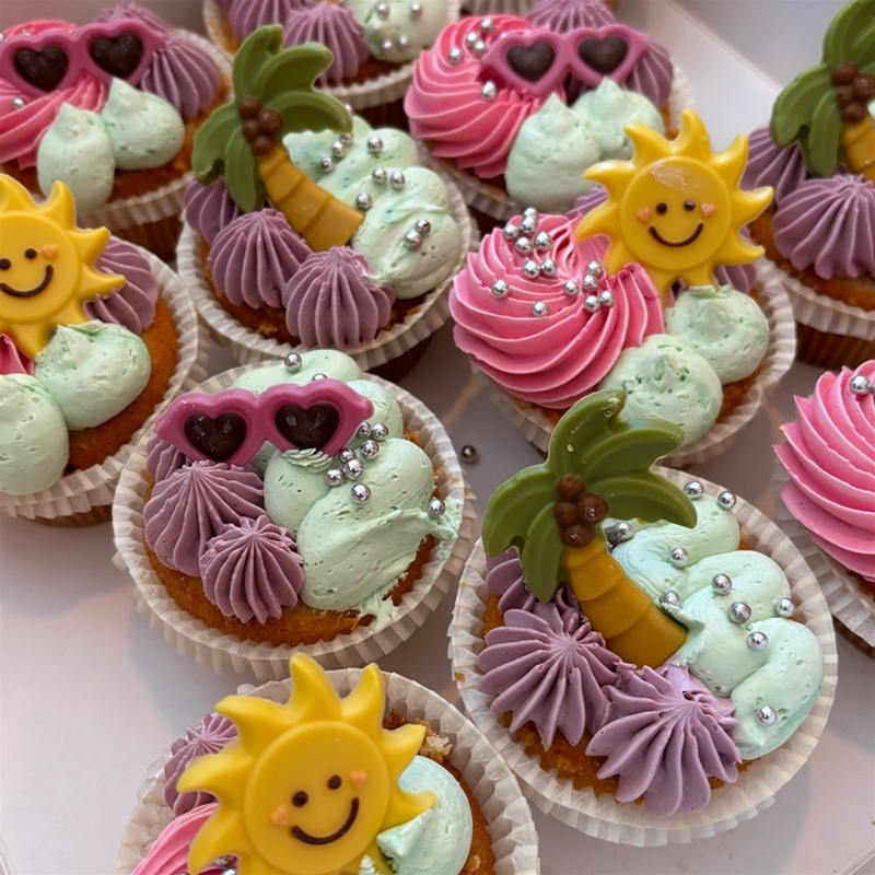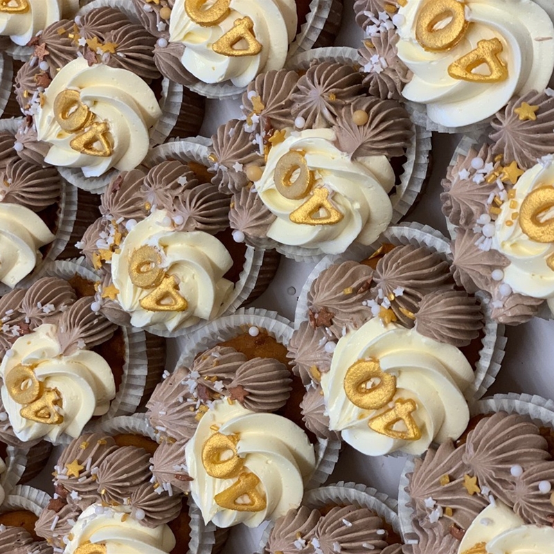Deze feestelijke cupcakes worden op maat gemaakt. Ze kunnen daarom alleen telefonisch of in de winkel tijdens openingstijden besteld worden.
