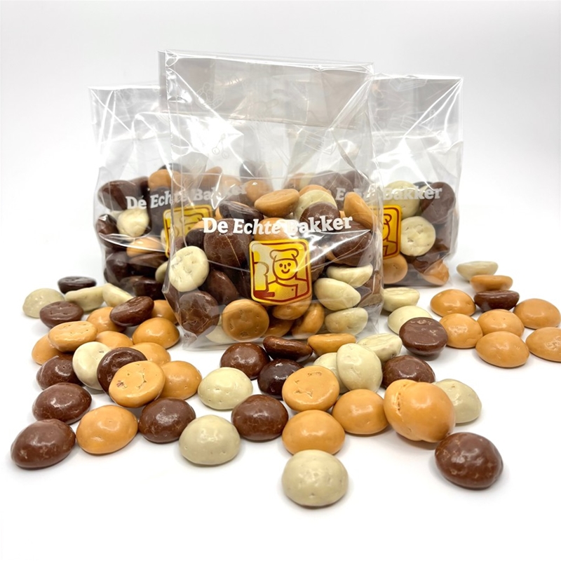 Gemengde chocolade kruidnoten; wit, melk, puur en caramel.