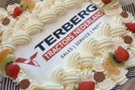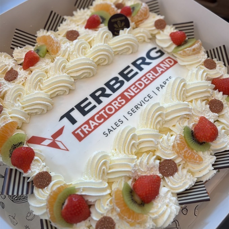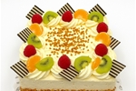 Onze verrukkelijke slagroomtaart gemaakt met luchtige cake, volle slagroom, rode vruchten compote. Hij wordt gedecoreerd met fruit en chocolade.
