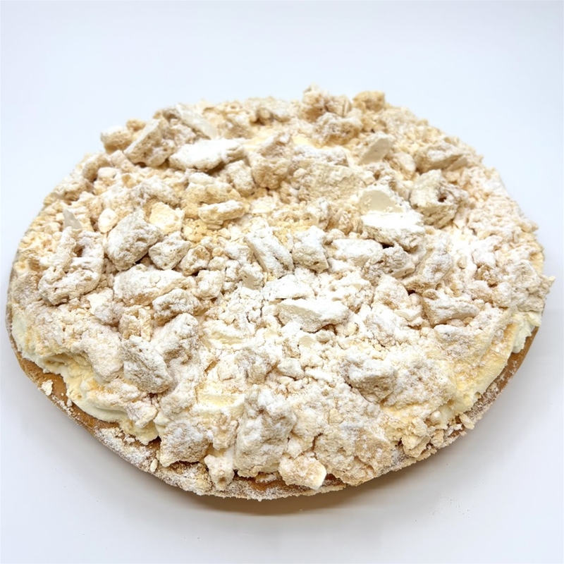 Onze 10 persoons abrikozen vlaai met room, slagroom en knapperig schuim. Kies je eigen bodem.