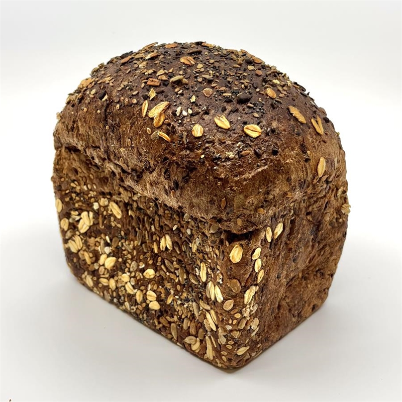 Een luchtig en eiweitrijk brood dat veel zaden en pitten bevat. Bewaar hem thuis gekoeld.