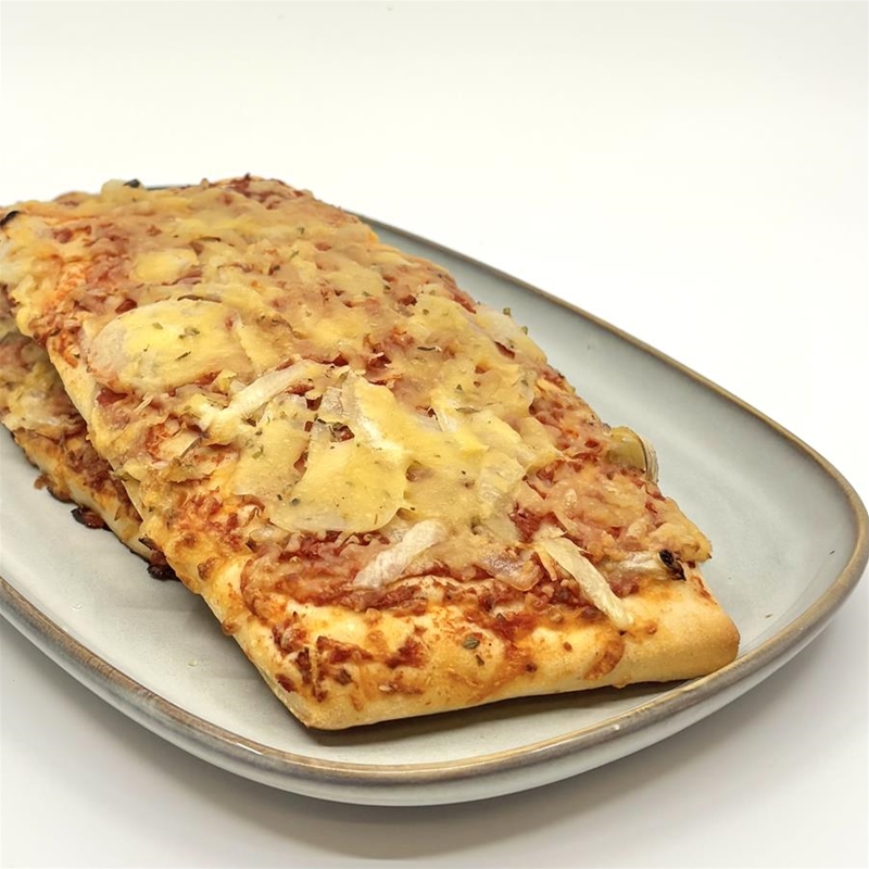 Onze kaas ui kruier met tomatensaus, ui en kaas. Dit product is vegetarisch.